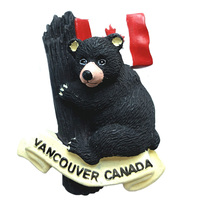 สติกเกอร์ติดตู้เย็นโพลีเรซินลายหมีดำ3D แม่เหล็กติดตู้เย็นของที่ระลึกการท่องเที่ยวแคนาดาวาดด้วยมือสำหรับตกแต่งบ้าน